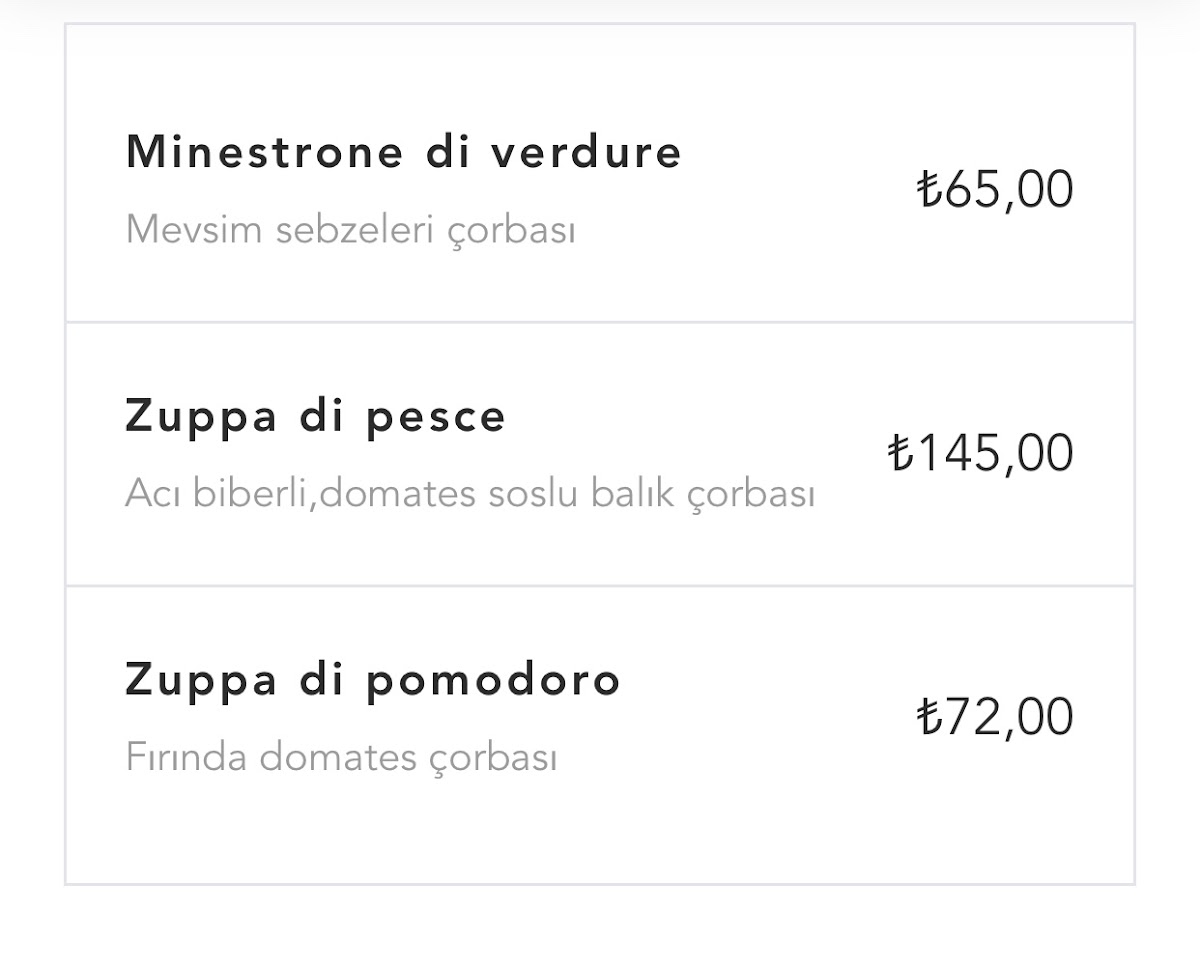 Lütfen sorbe seçeneklerimizi garsonunuza sorunuz Please ask your waiter for the flavour of the day