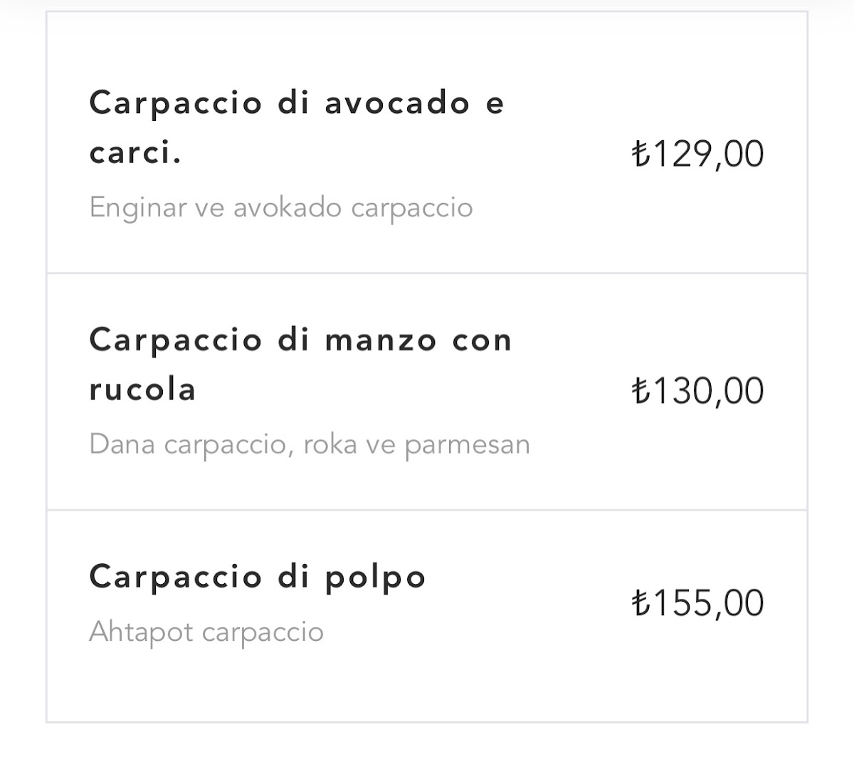 Avokado ve enginar carpaccio Avocado and artichoke carpaccio